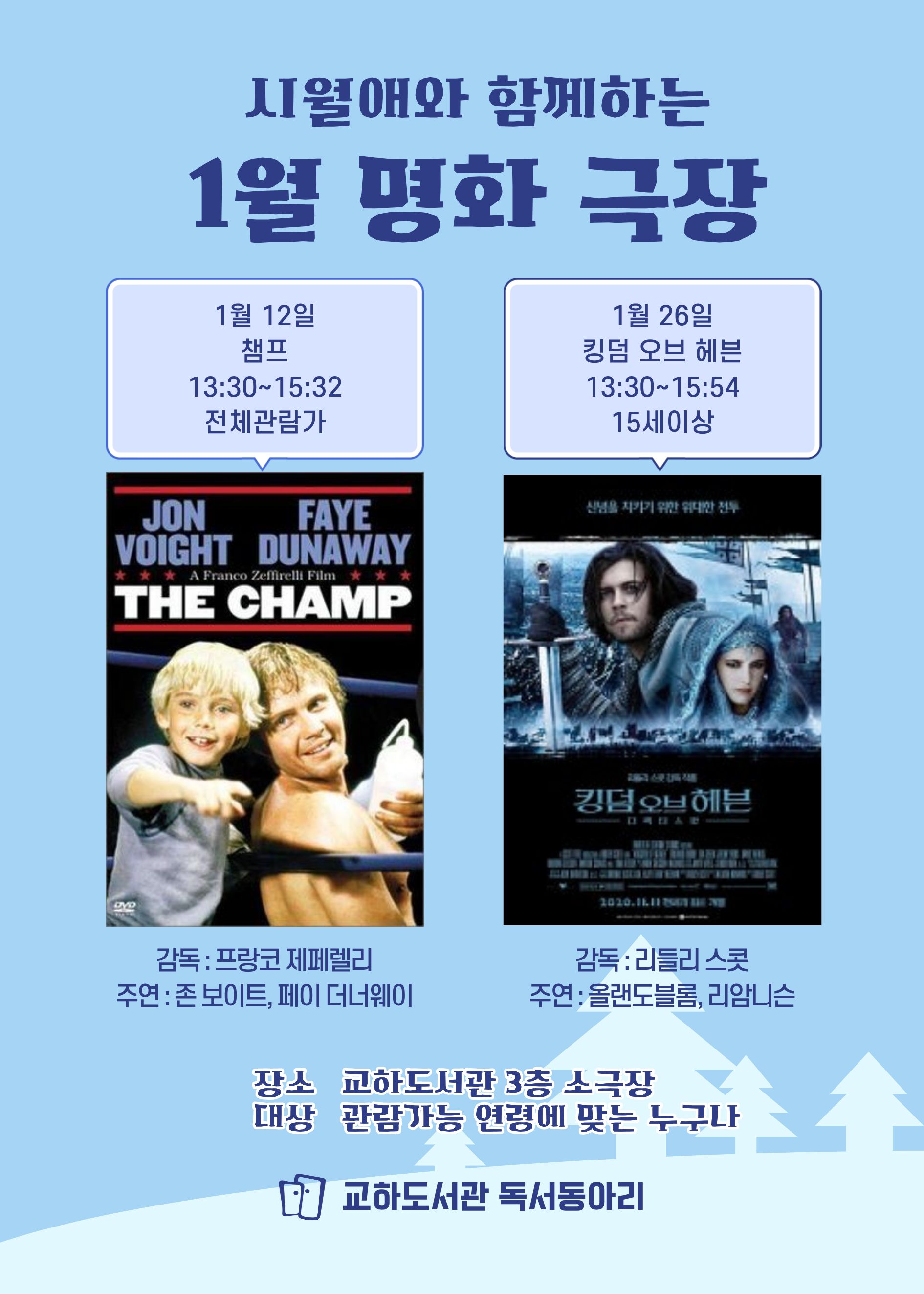 | 프로그램명 | 접수중 [동아리 명화극장] 챔프, 킹덤 오프 헤븐 |