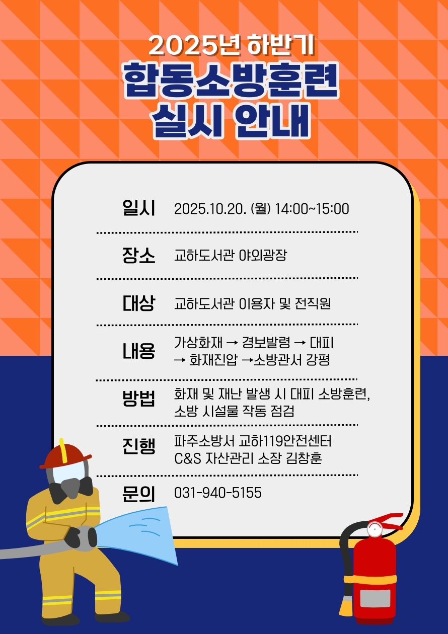 | 2025년 교하도서관 하반기 합동소방훈련 실시안내 | |