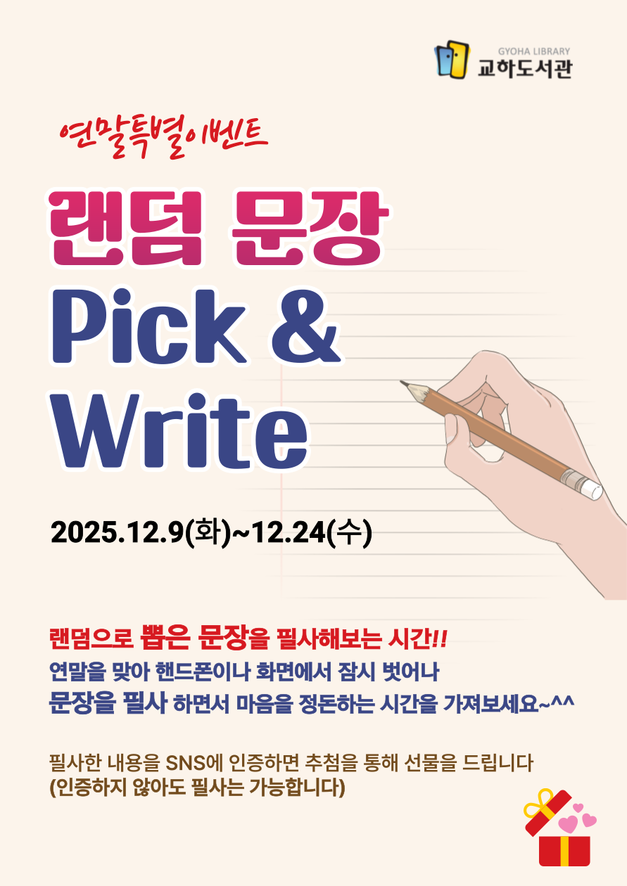| 프로그램명 | 종료 [연말이벤트] 랜덤문장 Pick & Write |