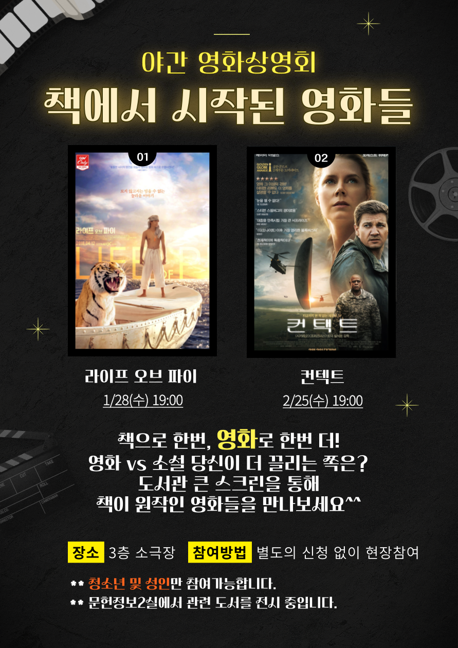 | 프로그램명 | 종료 [교하] 야간영화상영회 - 책에서 시작된 영화들 ② |