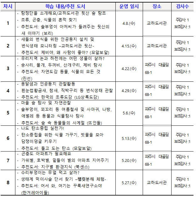 | 프로그램명 | 접수중 [교하] ★신청링크★공유학교★꾸러기 생물 탐정단 |