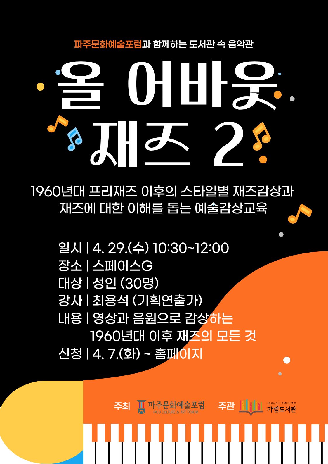 | 프로그램명 | 접수중 [도서관 속 음악관] 올 어바웃 재즈(2) |