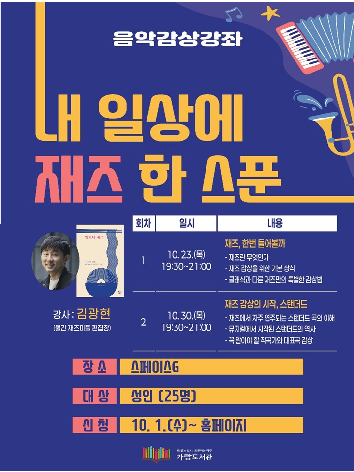 프로그램명 | 접수마감 [가람] 음악감상강좌 <내 일상에 재즈 한 스푼> |
