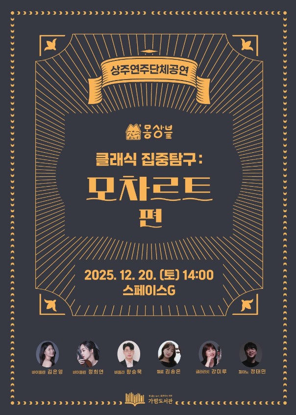 | 프로그램명 | 예정 [가람]상주연주단체 공연 <몽상블 클래식 집중탐구 : 모차르트 편> |