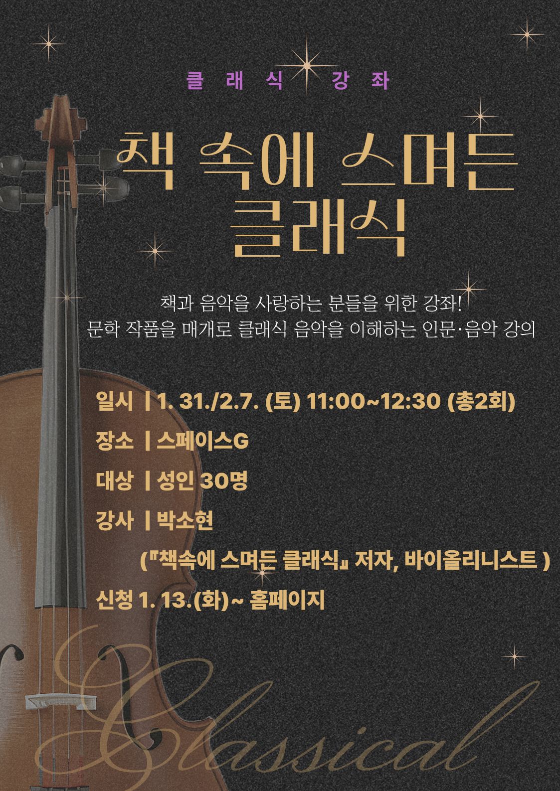 | 프로그램명 | 접수마감 [클래식 강좌] 책 속에 스며든 클래식 | |||||||||