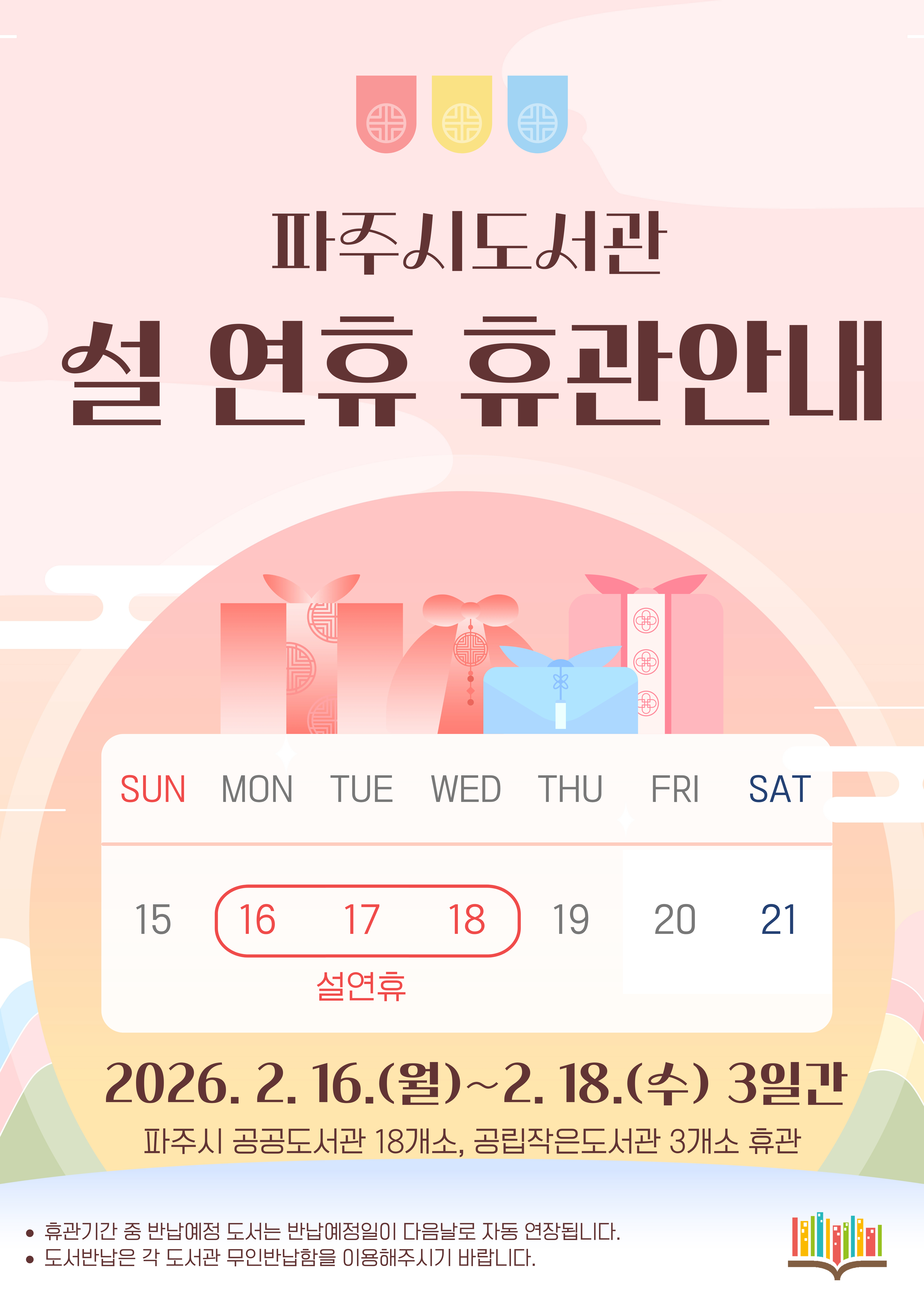 2026 파주시도서관 설 연휴 휴관안내(2.16~2.18)