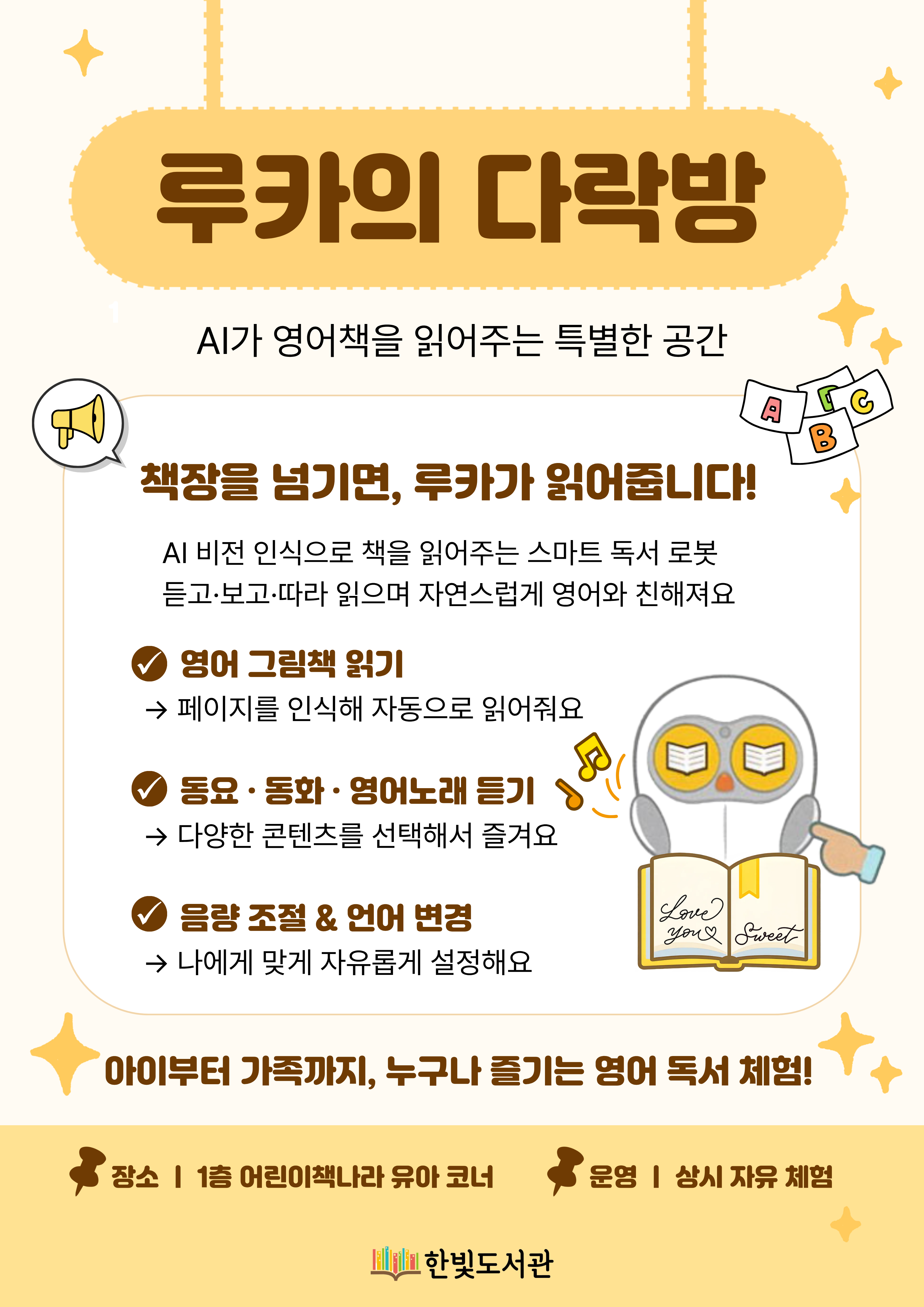 아이부터 가족까지 누구나 함께 즐길 수 있는 영어 독서 체험! 지금 바로 루카의 다락방에서 특별한 독서 시간을 만나보세요 📖