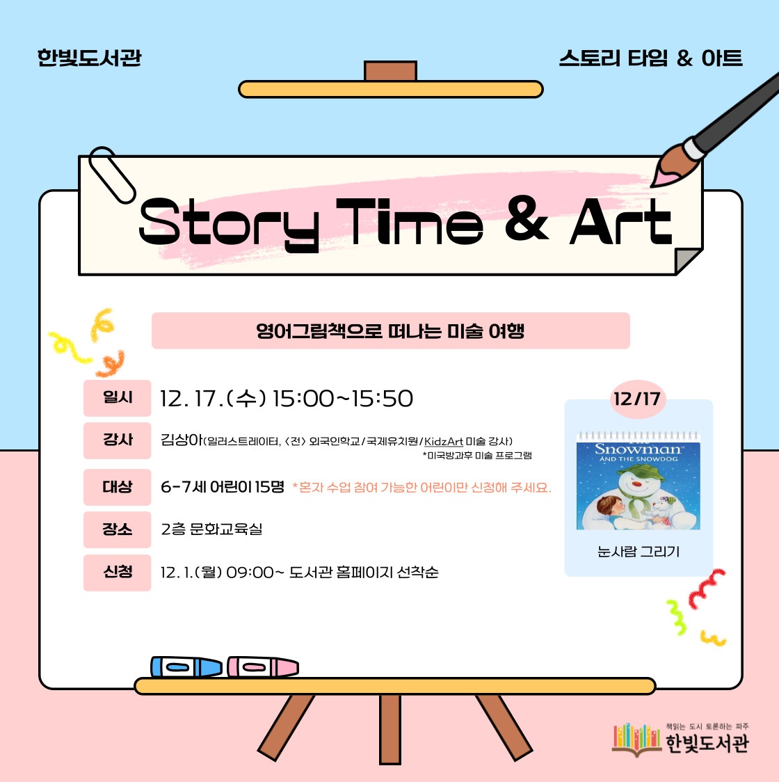 | 프로그램명 | 예정 [유아 영어+미술] Story Time & Art(12월) |