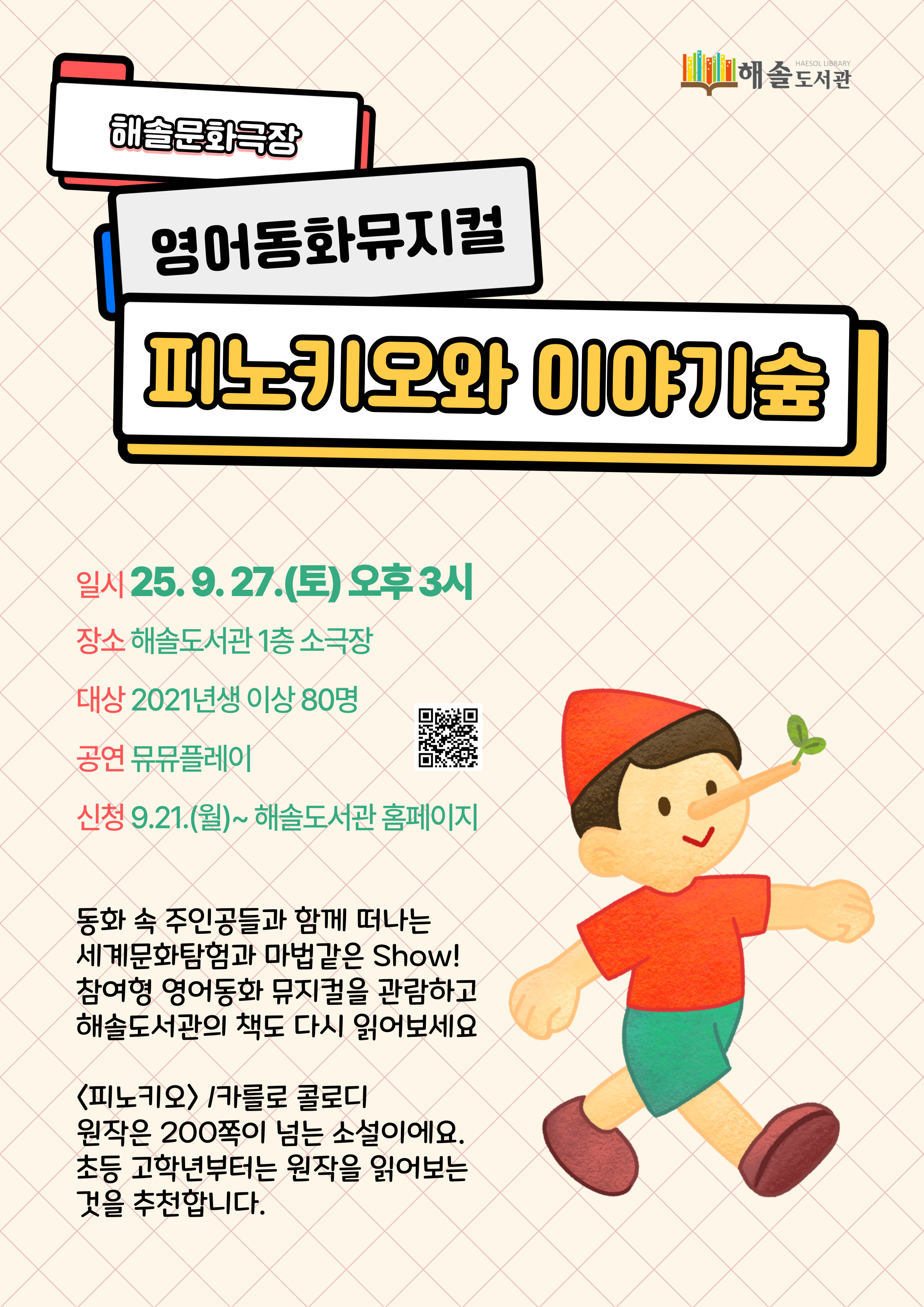 프로그램명 | 종료 [공연 취소] [해솔문화극장-독서의달] 피노키오와 이야기숲 |