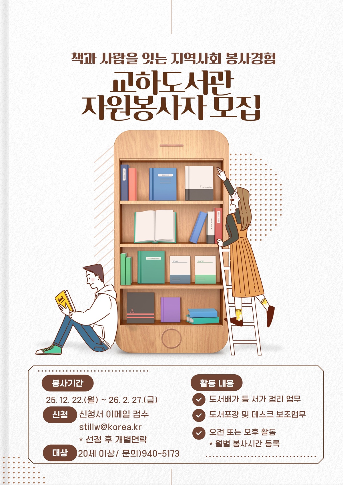 *교하도서관에서 성인 자원봉사자를 모집합니다. 문의는