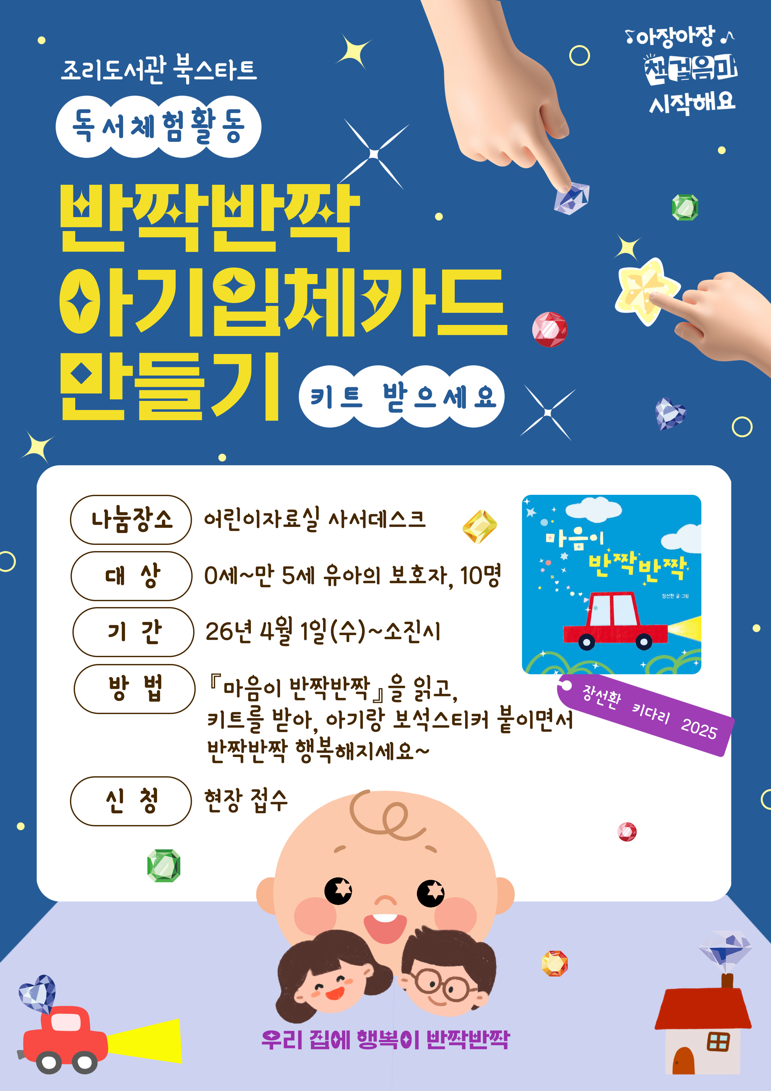 | 프로그램명 | 접수중 [조리도서관 북스타트] 반짝반짝 아기입체카드 만들기_4월 |