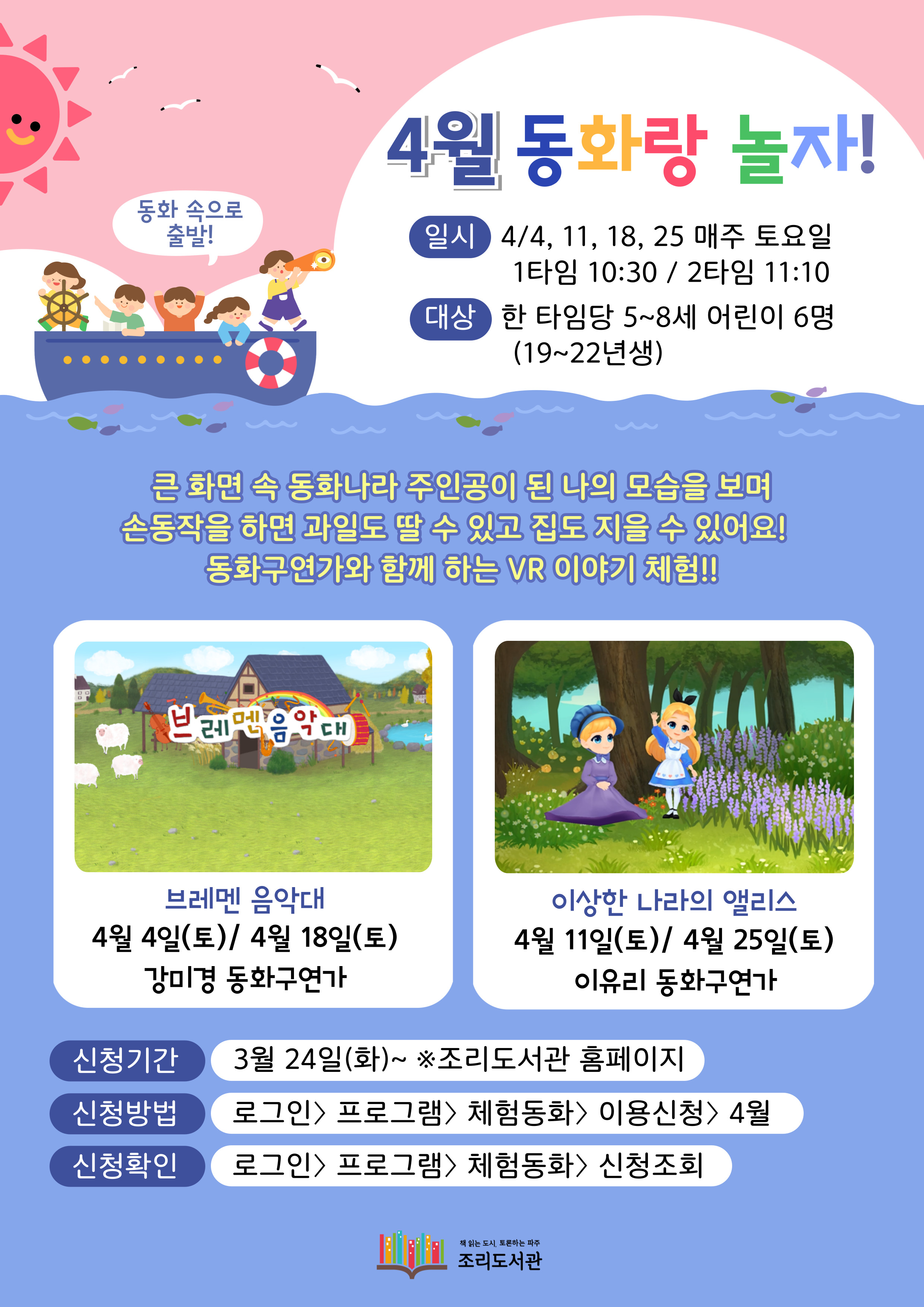 | [조리] 4월 동화랑 놀자! 가상체험동화 신청 안내(3/24~) | |