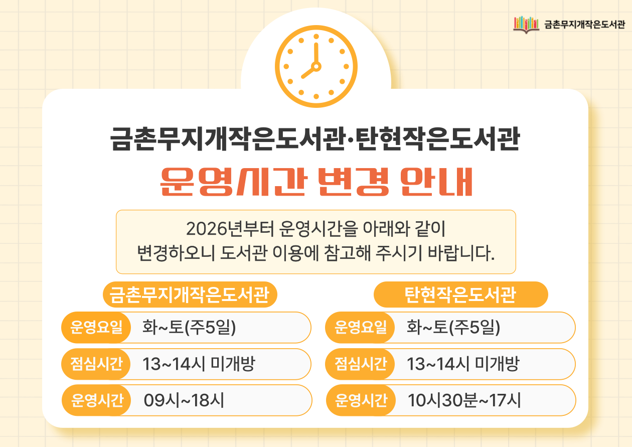 금촌무지개작은도서관/ 탄현작은도서관 운영시간 변경 안내